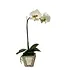 Artificial White & Green Orchid-Sm Container Antique Silver Mirror