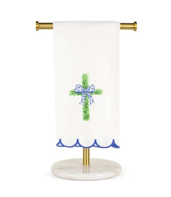 Boxwood Cross Scalloped Hand Towel - White/Green 20"x28"