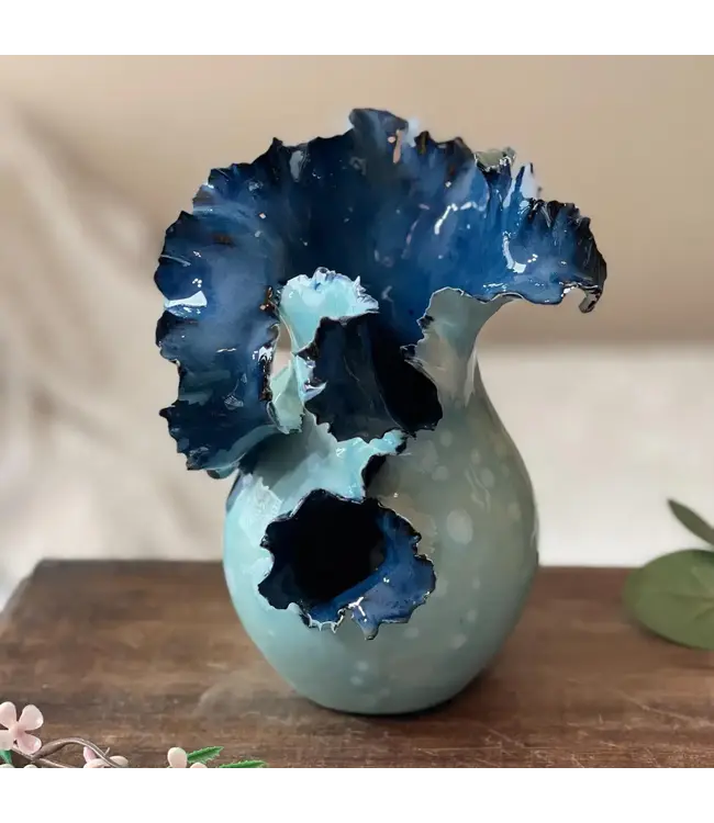 This Burst Vessel is a meticulously handcrafted porcelain vase. A labor of love, each delicate vessel is expertly sculpted, creating a masterpiece that will elevate the look of your home décor and become an heirloom piece for generations to come.