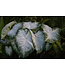 Aaron has medium leaves white in color, white veins with green edges. Caladiums require and thrive in the warm summer day and night temperatures. White caladiums brighten the dark and shaded areas and look beautiful with green foliage.