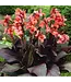 Angelique is a dwarf variety that showcases salmon-pink blooms atop striking dark bronze foliage- making it a showstopper for your containers and garden this summer. This is a bare root rhizome, ready to plant.