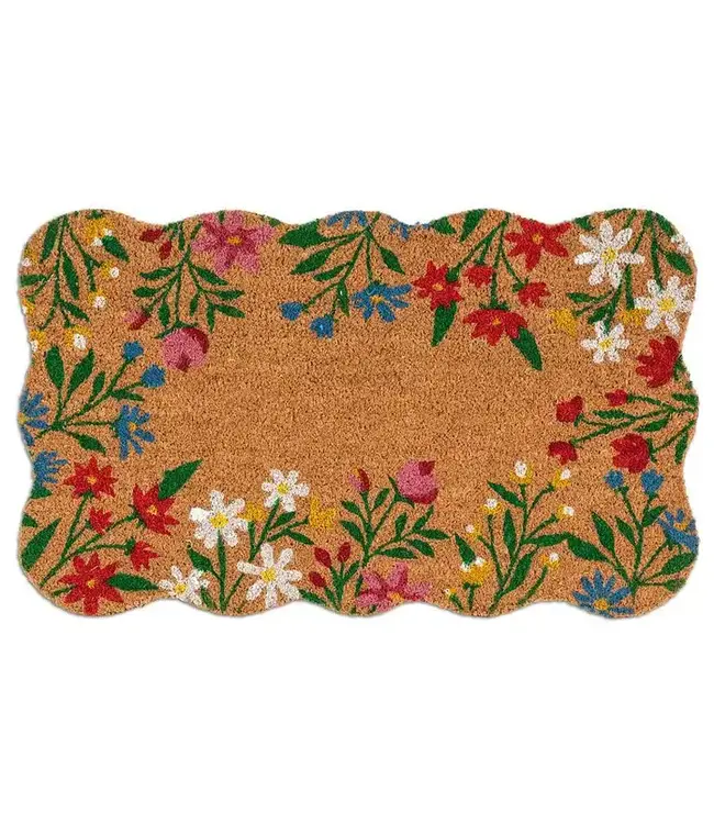 Floral Border Scallop Doormat-18x30"L