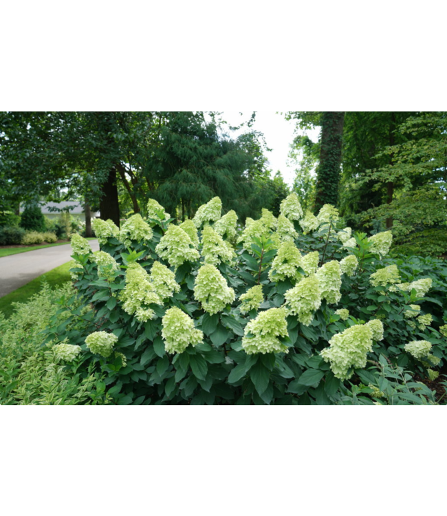 Hydrangea 'Limelight Prime' : A show-stopping hydrangea variety, 'Limelight Prime' captivates with its abundant, large lime-green blooms that transition to soft pink in fall. Its compact size makes it perfect for gardens, containers, or as a focal point. Enjoy its long-lasting and eye-catching beauty in your landscape.