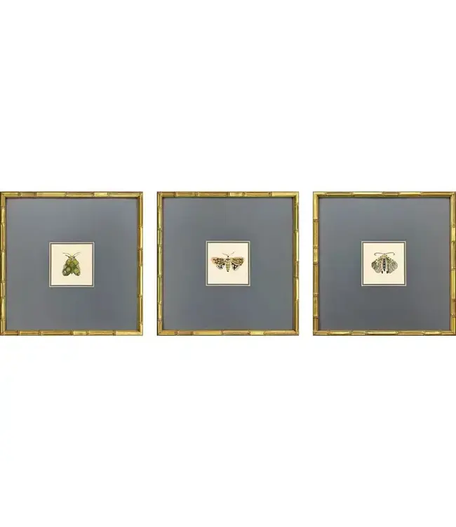 Pastel Moths Wood Green Framed Wall Art SINGLE