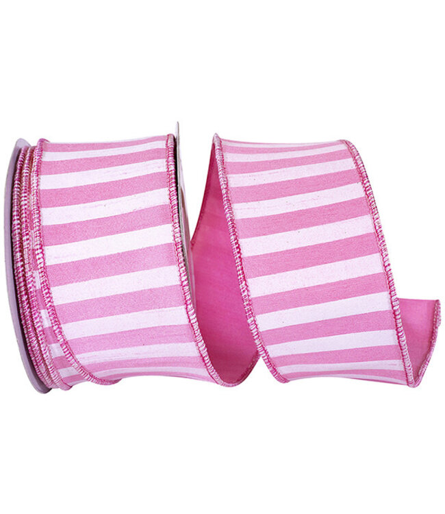 Ribbon - Cabana Stripe Horizontal Dupioni Lux Wired Edge Ribbon, Pink, 2.5in x 10yd