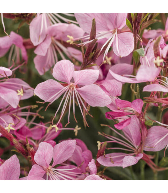 Gaura 'Karalee Petite Pink': Delicate and charming, this compact pink-flowering perennial brings grace to any garden. With its dainty blooms and airy appearance, it adds a touch of elegance and beauty to borders, containers, and cottage gardens. Easy to grow and low maintenance.