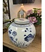 Large porcelain melon jar, blue and white fish design, 12"H x 11"W