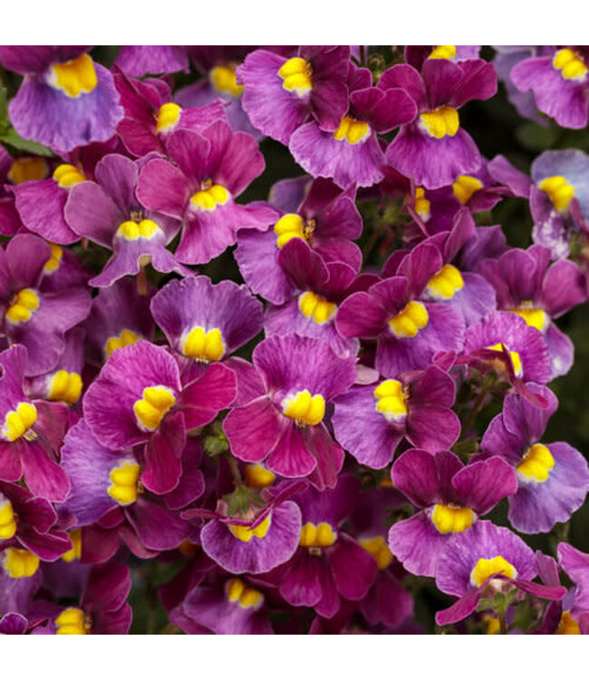 Nemesia Aromance Mulberry: Experience the allure of its fragrant plum-colored blooms that grace your garden all season long. A perfect choice for both early spring and fall, this variety captivates with its captivating scent and vibrant colors.