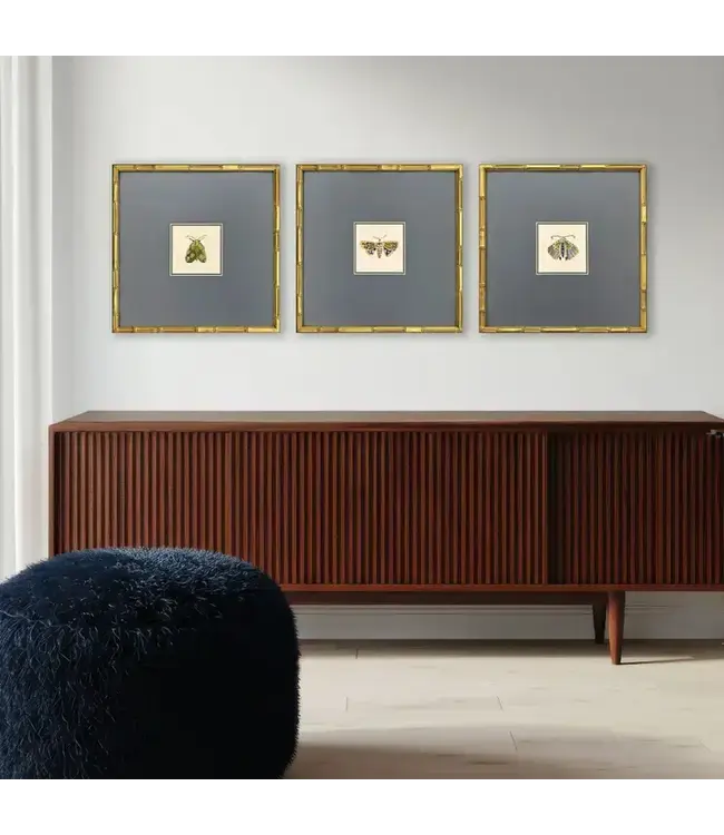 Pastel Moths Wood Green Framed Wall Art II 3PC