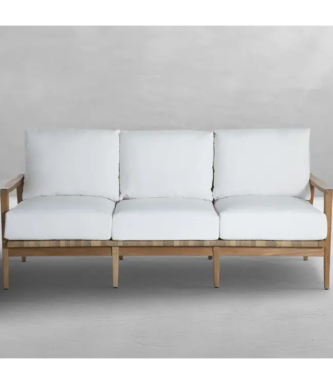 The Pointe Sofa seamlessly blends mid-century sophistication with modern practicality. This sofa is crafted from premium Indonesian teak, celebrated for its strength and dense grain, ensuring long-lasting beauty and performance in outdoor settings.