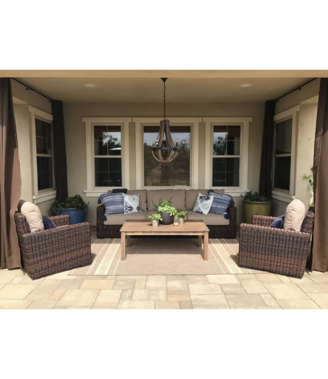 Coastal Teak X Coffee Table features an open silhouette with an X design, coupled with seamless joinery. Our unique multi-step finish gives the natural wood a warm grey color, complementing our other collections for the perfectly curated coastal design. Constructed of 100% solid teak wood, these excellently engineered pieces develop a lovely patina over time. Their natural grooves and subtle rustic features lend a unique look and character to each item. Teak wood, known for its durability and natural moisture-resistant oils, is an excellent choice for outdoor furniture that will stand the test of time.
